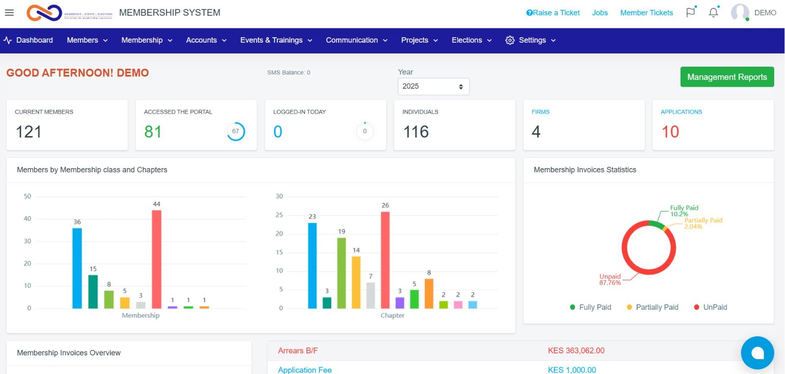 Get insights into membership trends, financial performance, and member engagement with visual dashboards.